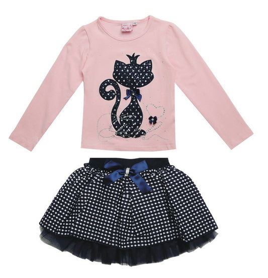 2016 Fashion winter Boutique Outfits Autumn Baby clothes Girls Sets With Cute cat Print Long Sleeve Tops