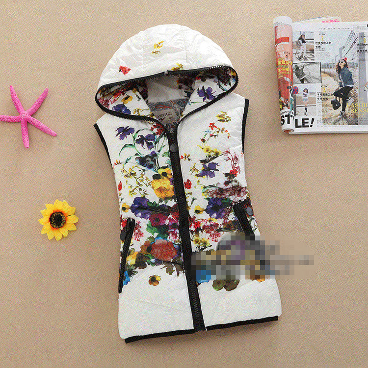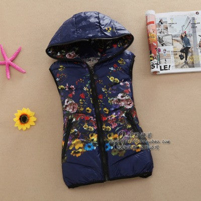 Genuine Ladies Vest Jacket 2016 Winter Women Korean Printing Cotton Vest Short Slim