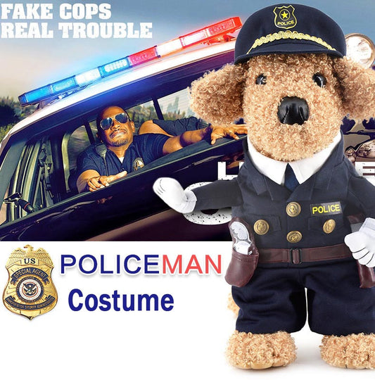 Funny Halloween pet cat dog police costume cosplay with dog police hat small dog puppy