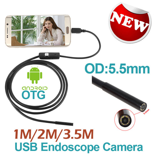 Micro USB 5.5mm Lens Endoscope 6LED Industrial Portable Camera Endoscope 1M Mini USB Camera Android OTG Phone Endoscope
