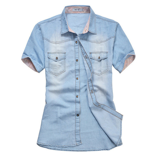 2016 Summer Denim Men Shirt Casual Turn-down Collar Chemise Homme