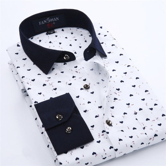 Brand Print Men Shirt Long-sleeve Shirt Slim Fit Casual Shirts Fashion Men's Clothing Casual Camisa