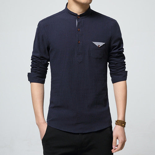 2016 New Fashion Brand Men Casual Shirt Solid Long Sleeve Collar Cotton Linen