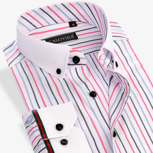 CAIZIYIJIA Summer 2016 Mens Colored Striped Shirt Business Casual White Square