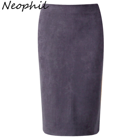 Neophil 2016 Winter Gray Army Green Women Suede Midi Pencil Skirts Causal High Waist