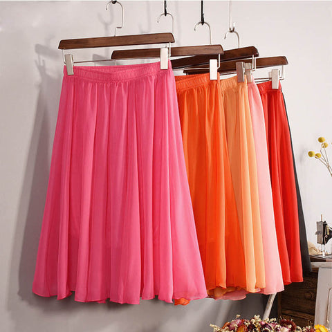 New Fashion Women's 23 Color High Waist Chiffon Pleated Midi Skirt 2017 Summer