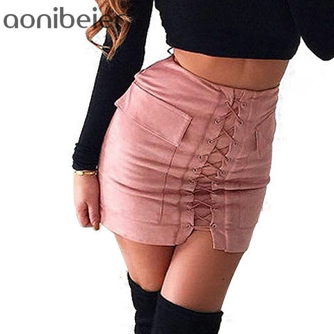 Women Autumn Lace-up Pencil Skirt 2017 Winter Fashion Cross High Waist Fashion
