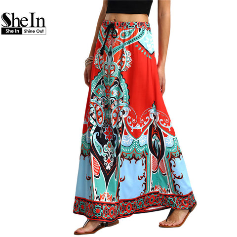 SheIn Long Maxi Skirt For Women New Arrival Ladies Multicolor Vintage Tribal Print