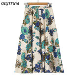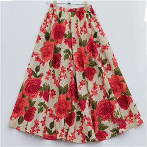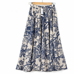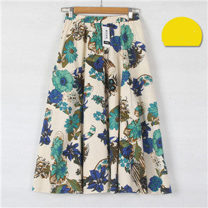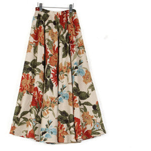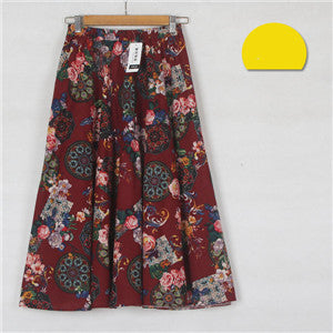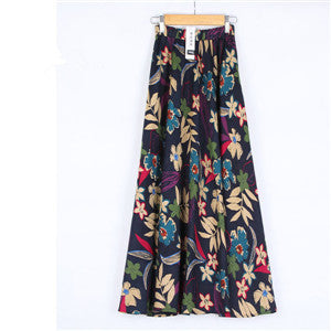 2017 Summer Casual Long Floral Print Women Cotton Linen Skirts QW060