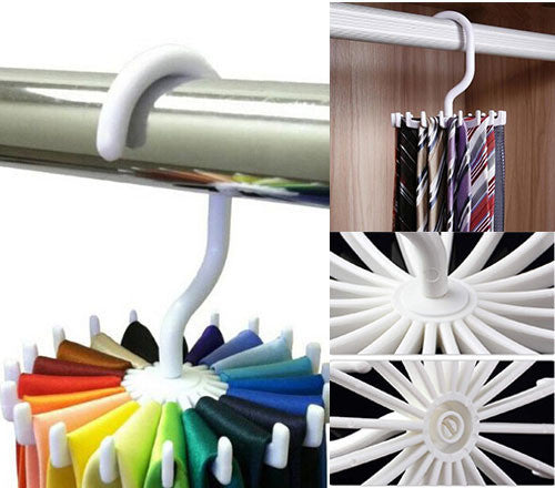 Feitong White Rotating Tie Scarf Scarfs Rack Adjustable Hanger Holds Holders 20 Neck Ties Organizer Hang Tool