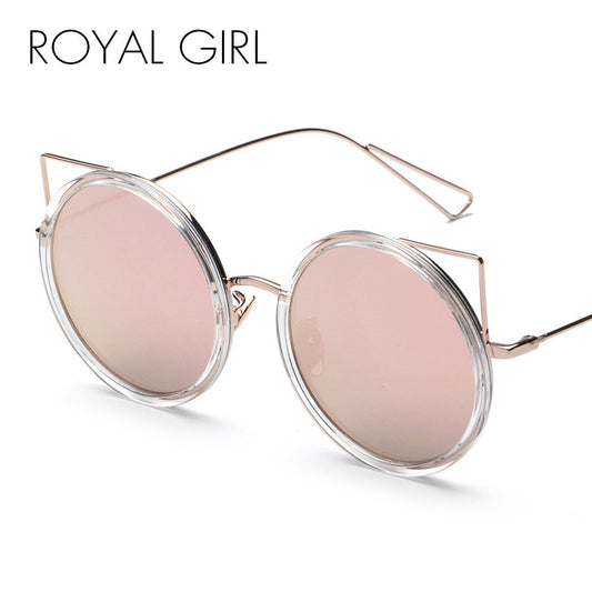 ROYAL GIRL New Round Mirror Coating Lens Sunglasses Women Brand Designer Cat eye Sun Glasses Vintage Oculos De Sol ss252