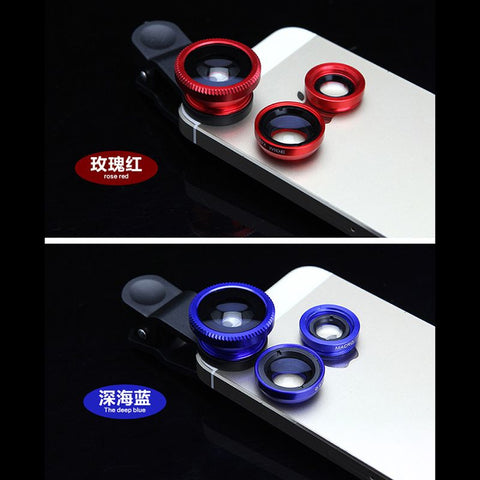 3-in-1 Multifunctional Phone Lens Kit Fish Lens+Macro Lens + Wide Angle Lens Transform Phone Into