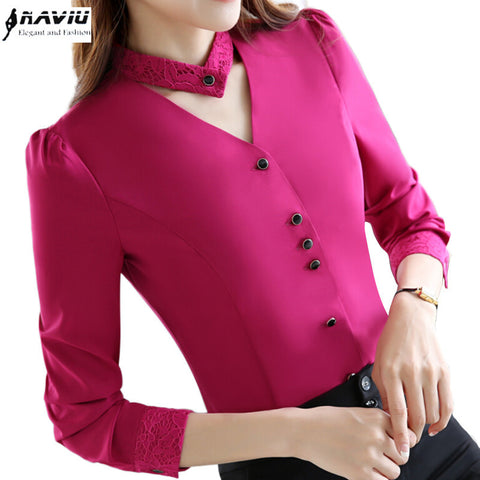 2017 New slim formal long sleeve women shirt OL autumn Elegant V-neck lace Patchwork
