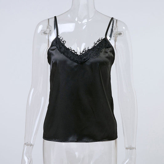 2016 Satin Women's Shirt Mike Strap Elegant Crop Top Sexy V neck Camis Women Short