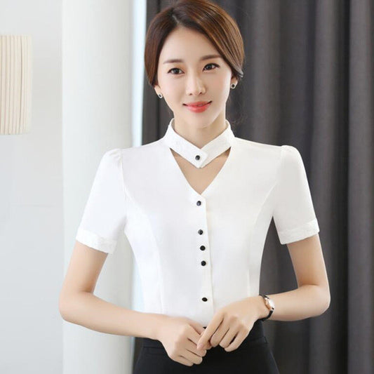 2017 New slim formal long sleeve women shirt OL autumn Elegant V-neck lace Patchwork