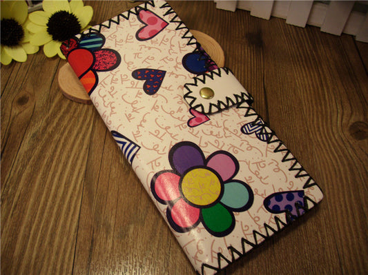 free shipping Fashion doodle women's long design handmade national wallet trend wallet print clutch card holder women's handbag