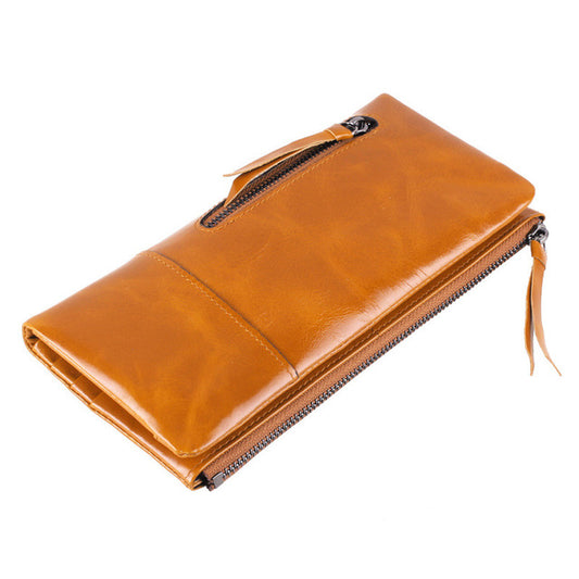 Difenise Authentic Cow Leather women Wallets Vintage style Zipper close large capacity