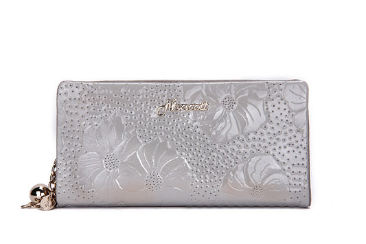 Genuine Leather Women Wallet Green Zipper Floral Purse With Zipper Coin Pocket Portfolio