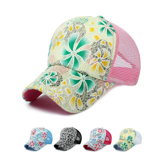 10 Colors Of Summer Outdoor Shading Cap Flower Pattern Rhinestone Pierced Mesh Baseball