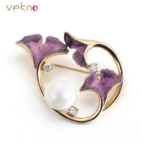VEKNO Minimal Crystal Enamel Flower Brooches With Imitation Pearl Gold Color New Fashion Brooch Pins Female Clothing Accessories