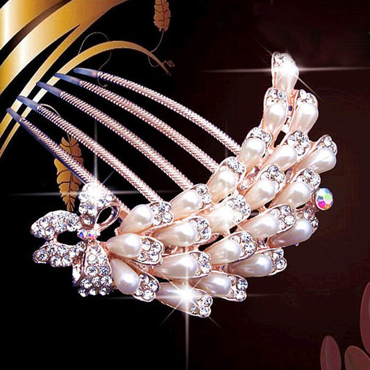 bride hairpin Peacock pearl flowers Wedding crystal rhinestone pearl flower hairpin diamante