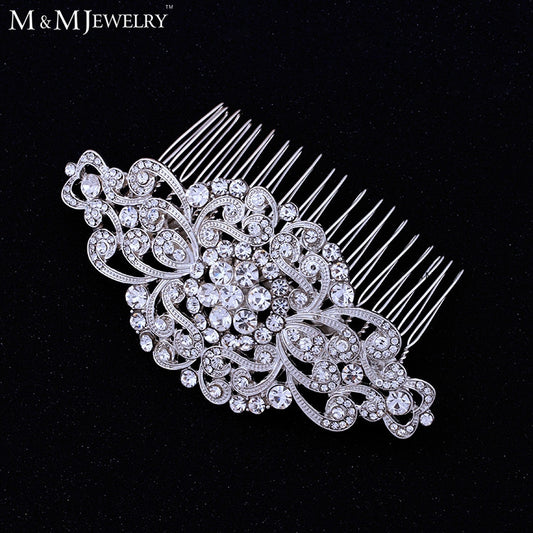 Clear Rhinestone Crystals Wedding Bride Bridal Floral Hair Comb Head Pieces Hair Pins