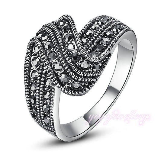 Black Marcasite Crystal Ring for women Size 6 7 8 9 18k gold silver color R254