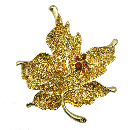 Enamel Pins Badge Crystal Rhinestone Maple Leaf Brooch Pin Plant Lapel Women Cute Collar Chapas Broches