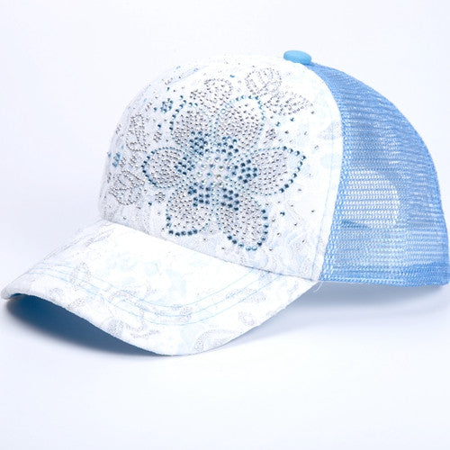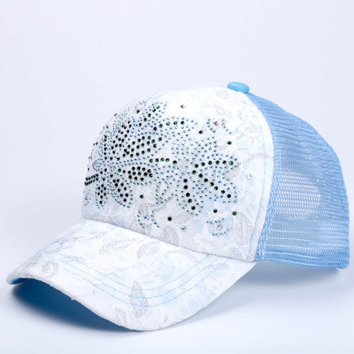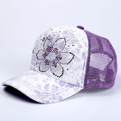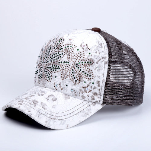 10 Colors Of Summer Outdoor Shading Cap Flower Pattern Rhinestone Pierced Mesh Baseball