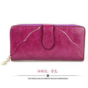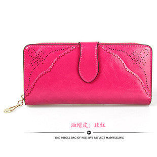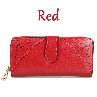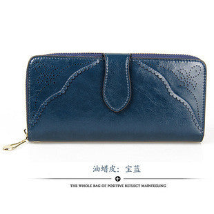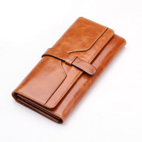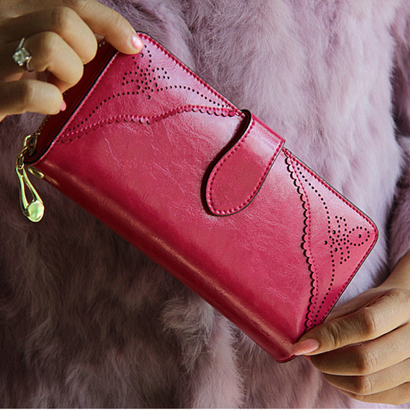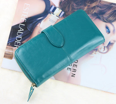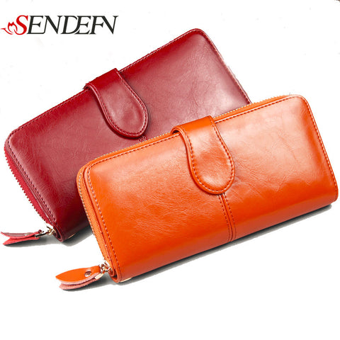 100% oil waxing cowhide wallet for women Long designer multi-card wallet holder women leather genuine purse free shipping