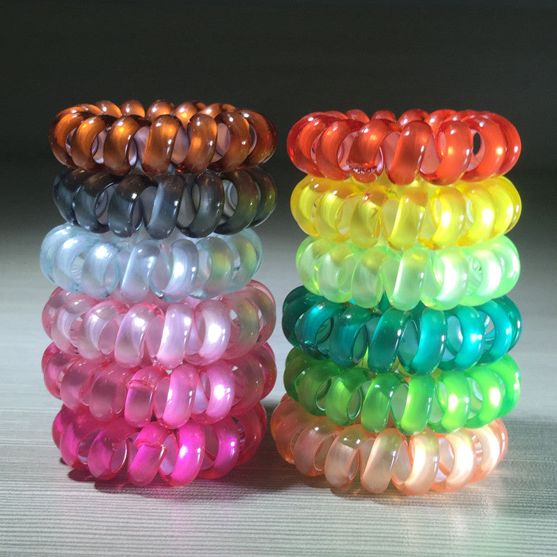 (12pcs) Hot Sale pearl candy color hair scruchies rope for girls elastic telephone wire