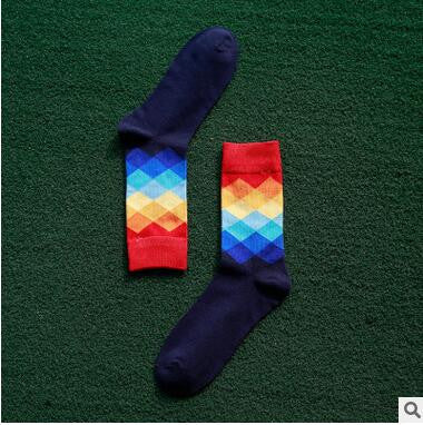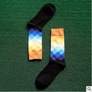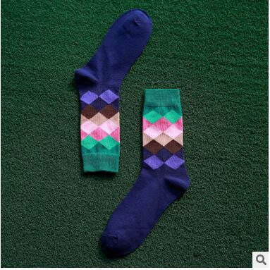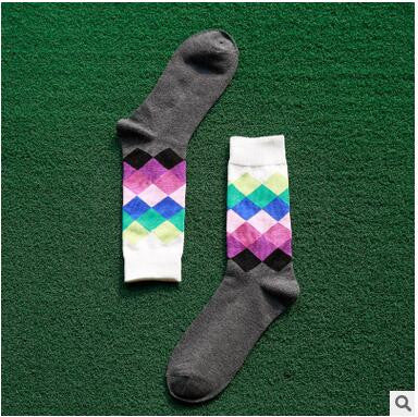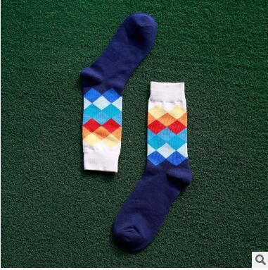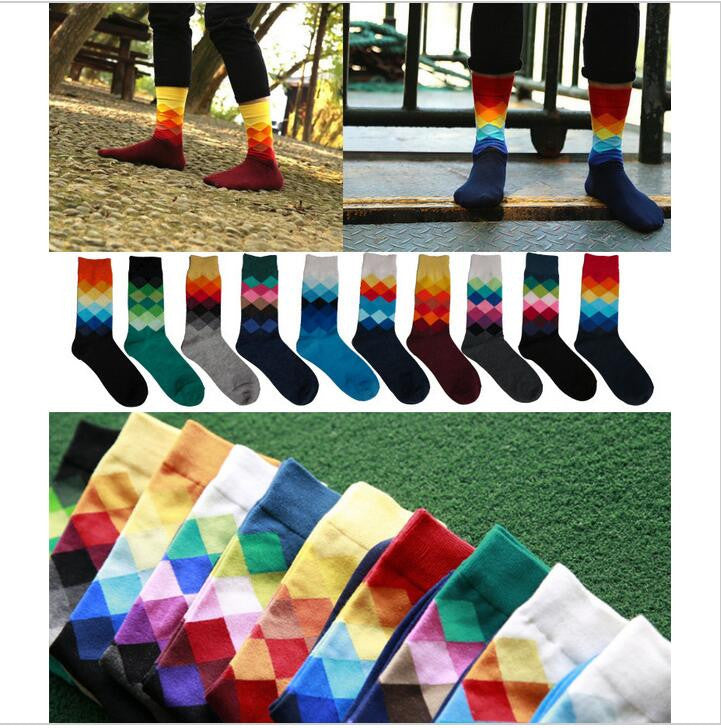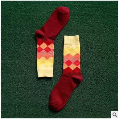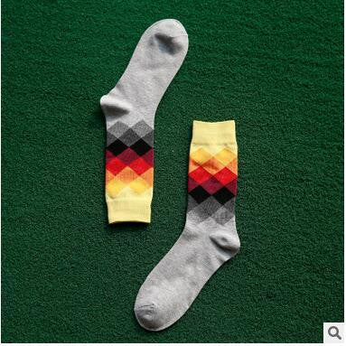 2016 10colors Men's socks British Style Plaid Gradient Color brand elite long cotton