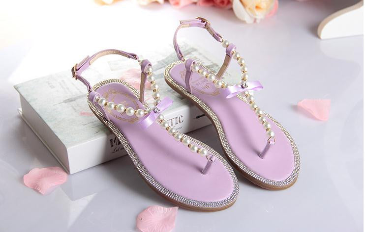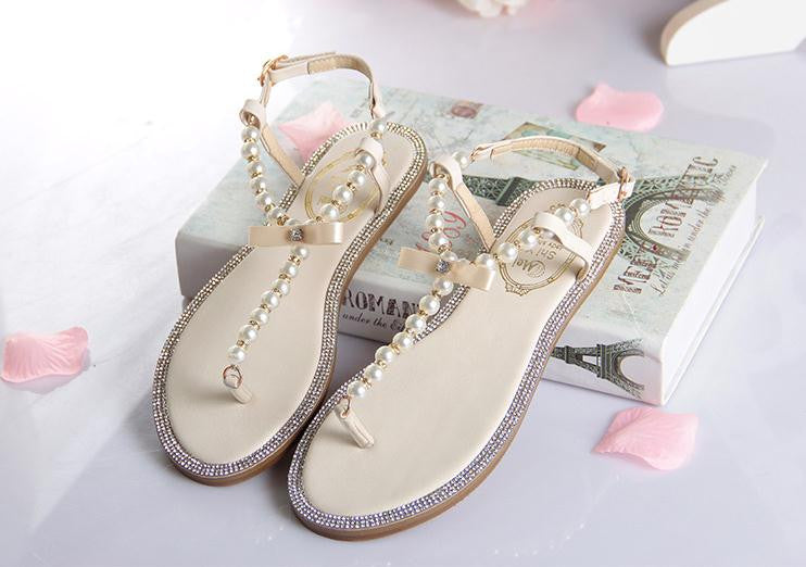 2016 bow women's flip-flop shoes rc t flip flops rhinestone pearl sandals