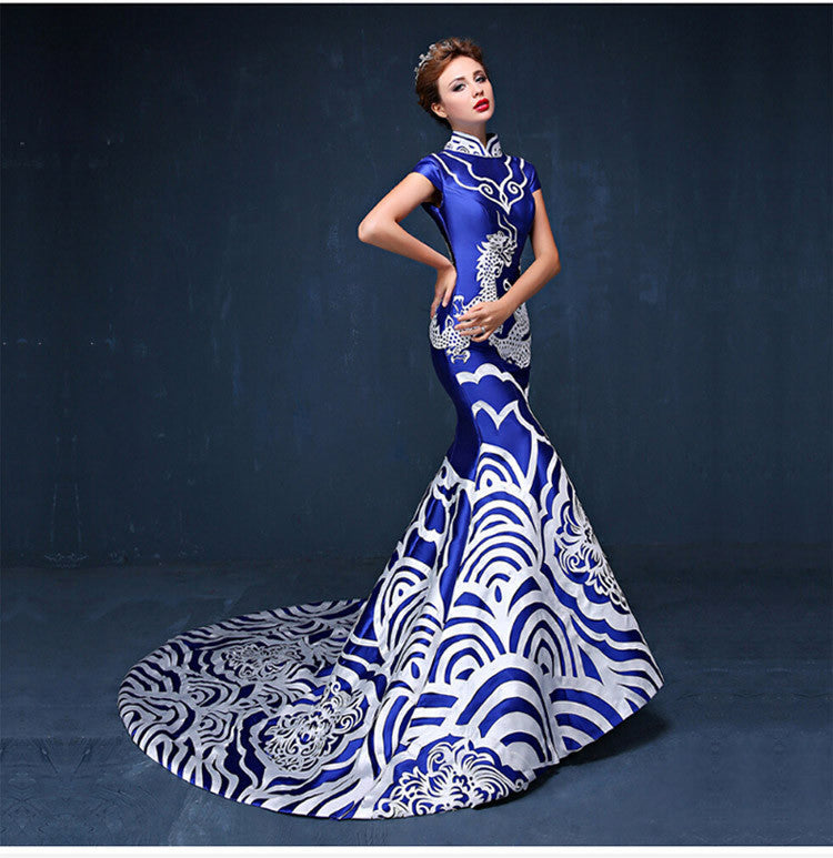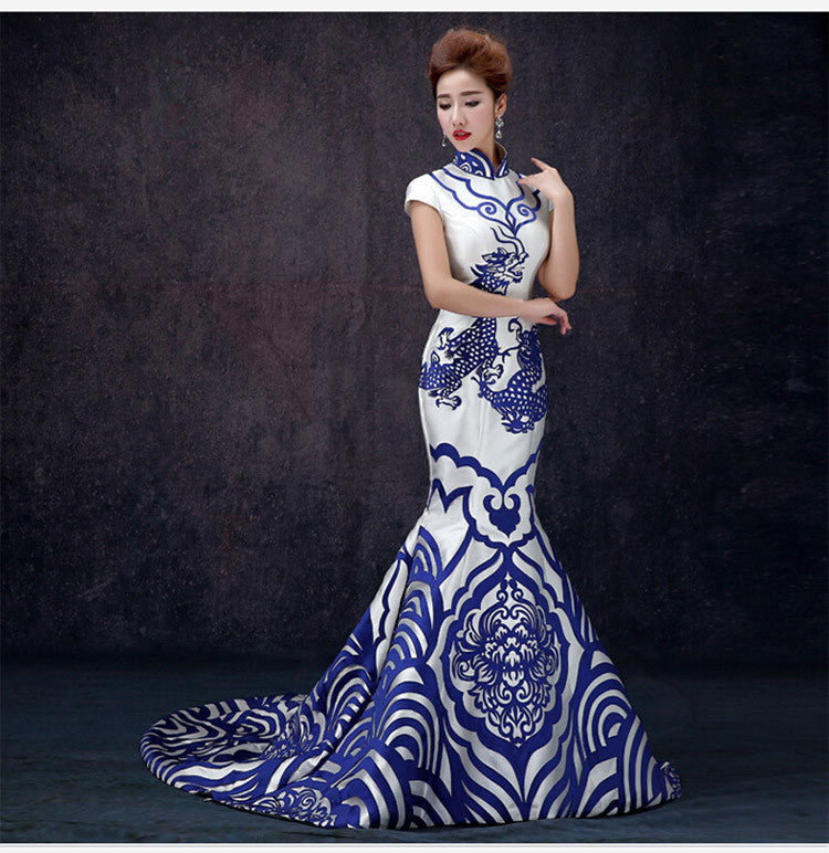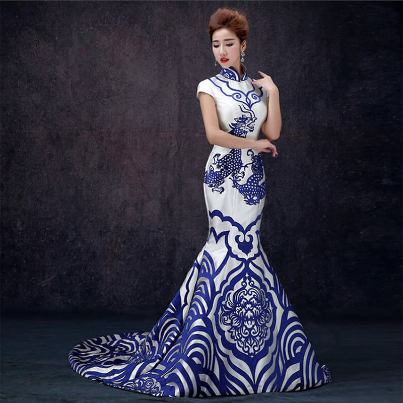 2016 Luxury Evening Dress Blue And White Porcelain Cheongsam Qipao Dresses Chinese