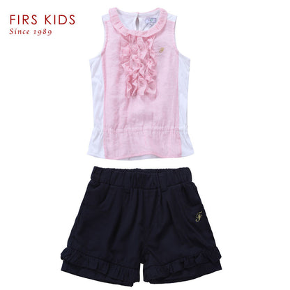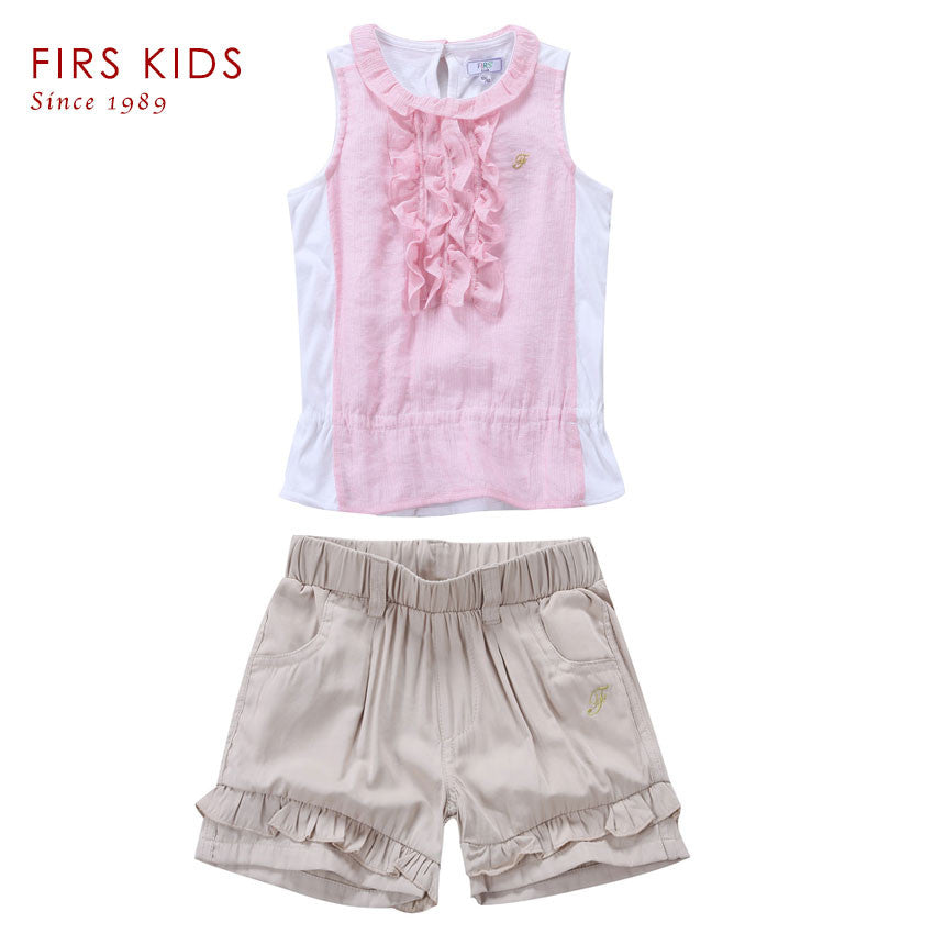 2016 new kids girl summer clothing set short sleeve pink T-shirt + shorts girl's
