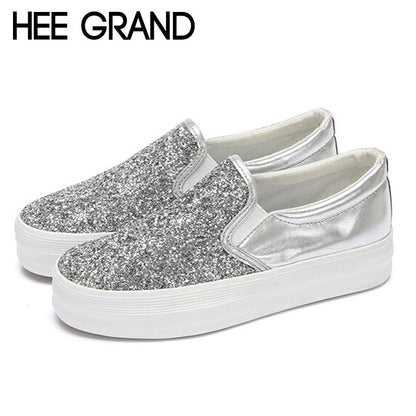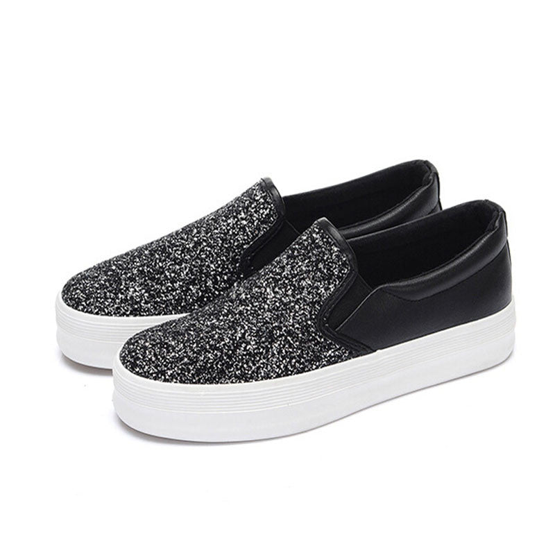 2016 Platform Loafers Fashion Bling Glitter Women Shoes Slip On Flats Ladies