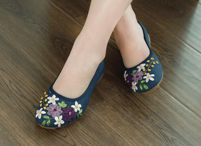 2016 Spring Retro Style Shoes Women Old Peking Flats Chinese Flower