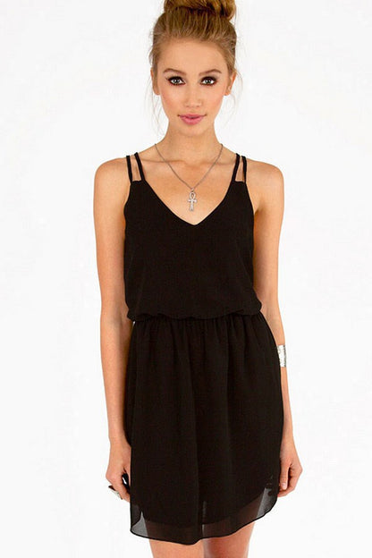 2016 Summer Style Chiffion Party Dress Women Casual V neck Beach Dress Sleeveless Red Black Sweet Mini Dresses Plus Size C1062
