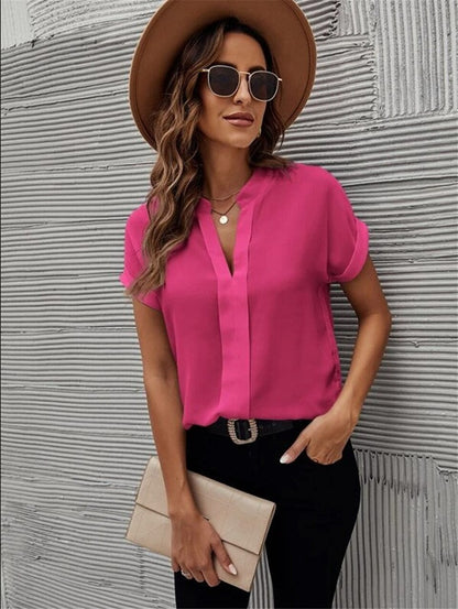 Fashion Women Chiffon Blouses Casual Female Loose Shirt Blouse Sleeveless Office V Top Lady neck