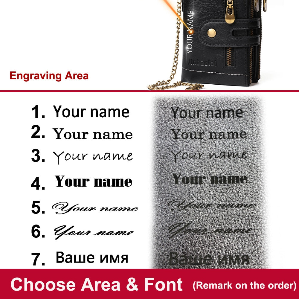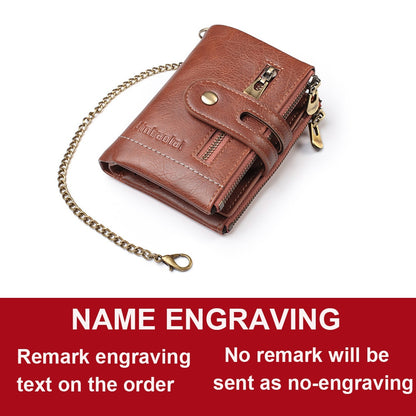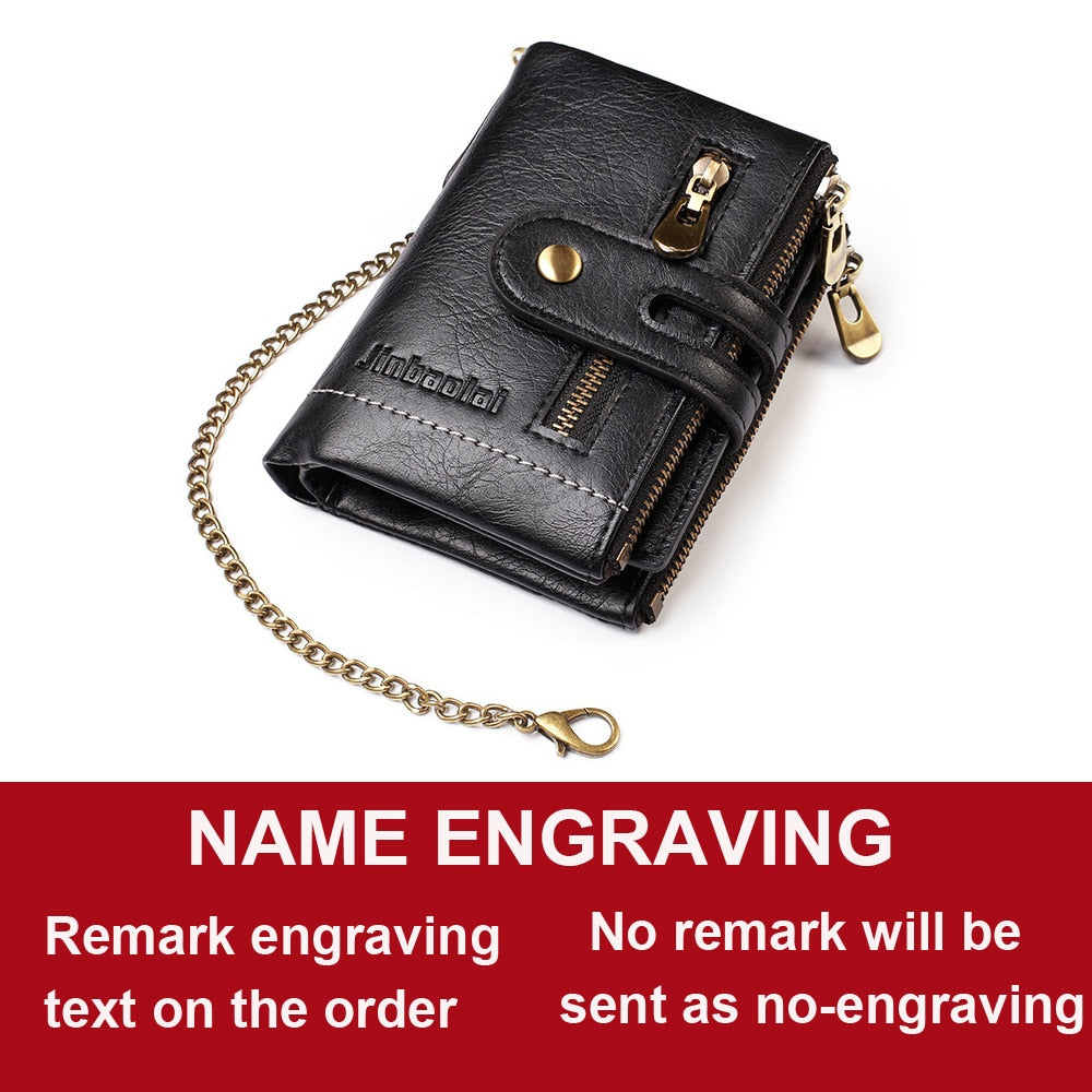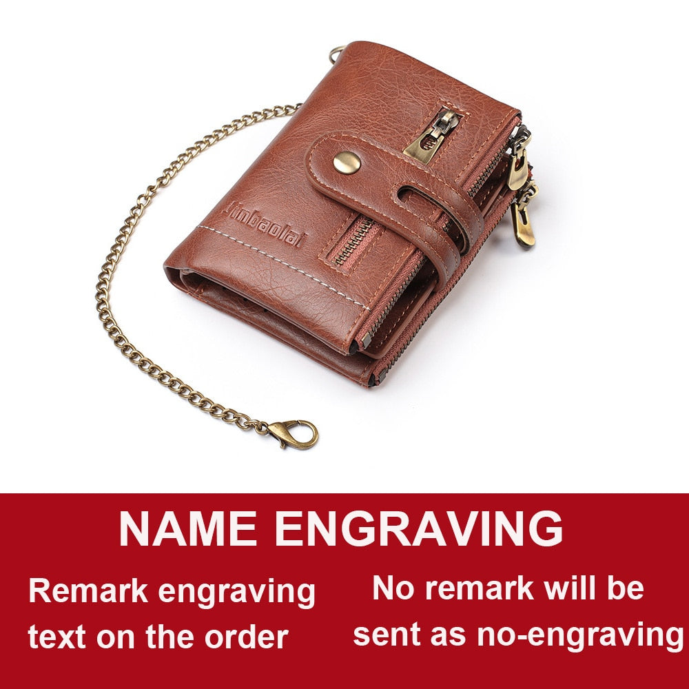 Men Wallets Name Customized PU Leather Short Card Holder Chain Men Purse