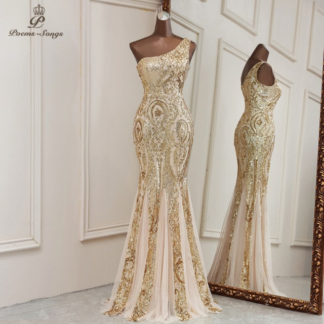 2021 New mermaid evening dresses Sexy one shoulder dresses for women party