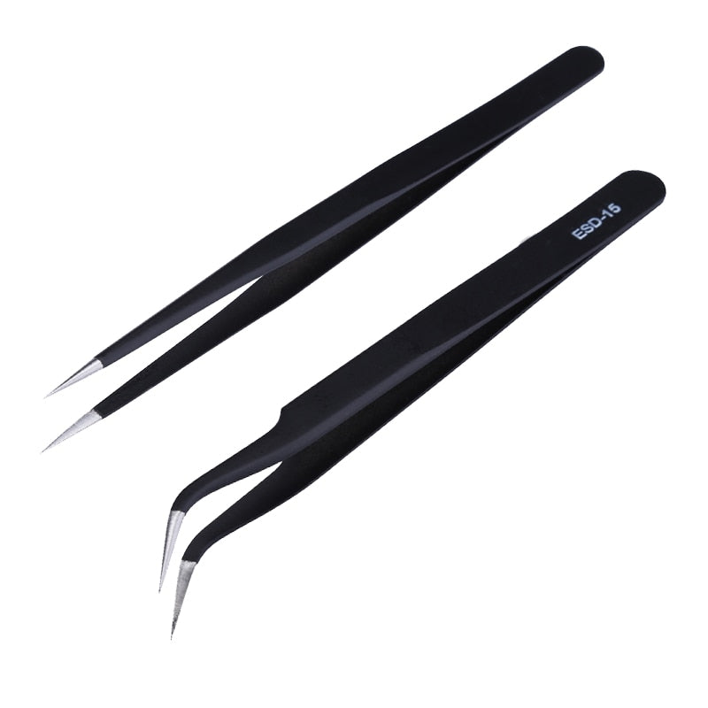 2pcs/lot Anti-static Precision Tweezers Set Pinzas Pincet Stainless Steel ESD Tweezer Electronics Repair Tools