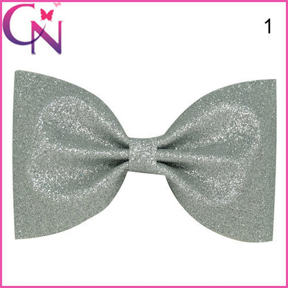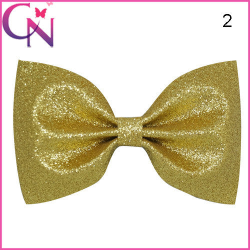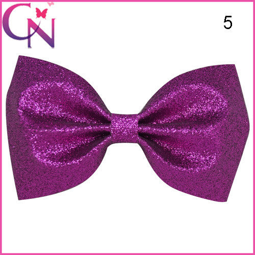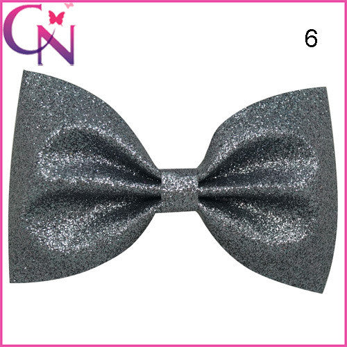 5'' 10COLORS Children Glitter Hair Bows Solid Shiny Bow With Mental Clips Hot