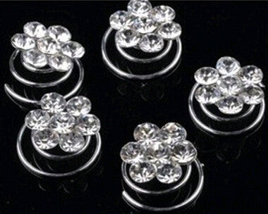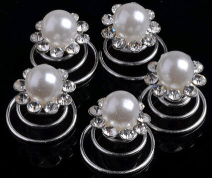 6pcs New Rose Flower Wedding Bridal Pearl Crystal Swirl Twist Hair Spin Pins Women Chic Hair