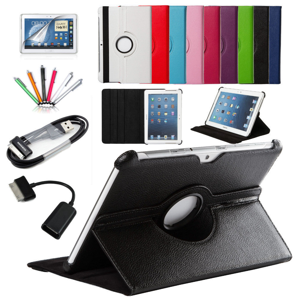 7 in 1 For Samsung Galaxy Tab 2 10.1 inch P5100 Tablet PU Leather Case Cover Rotating+Micro OTG cable+USB cable