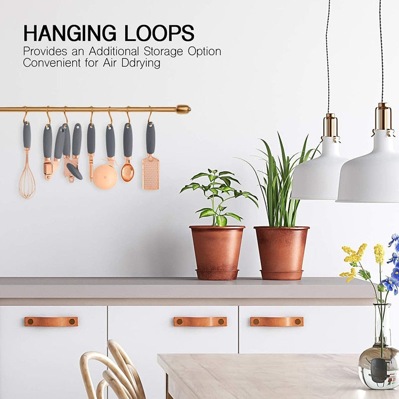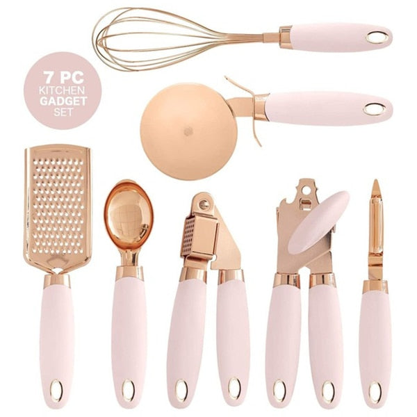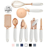 7-Piece Kitchen Gadgets Set Copper Coated Stainless Steel Utensils with Soft Touch Handles, Garlic Press Whisk Cheese Grater