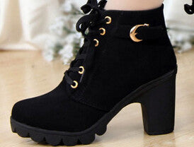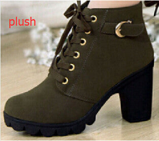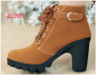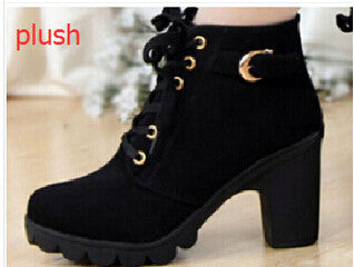 Autumn winter 2014 women new plus velvet short boots thick heels wild black