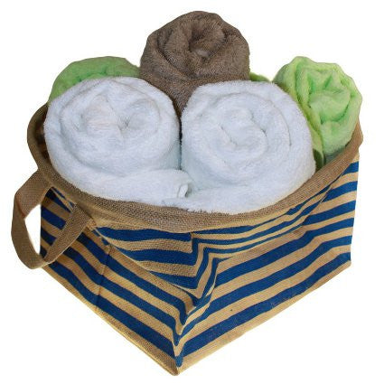 Big Jute Stripy Basket - Blue