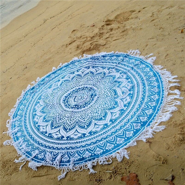 Blue Round Mandala Beach Towel Tassel Fringing Beach Throw Round Mat