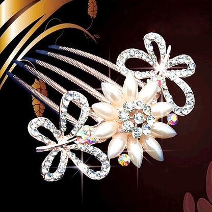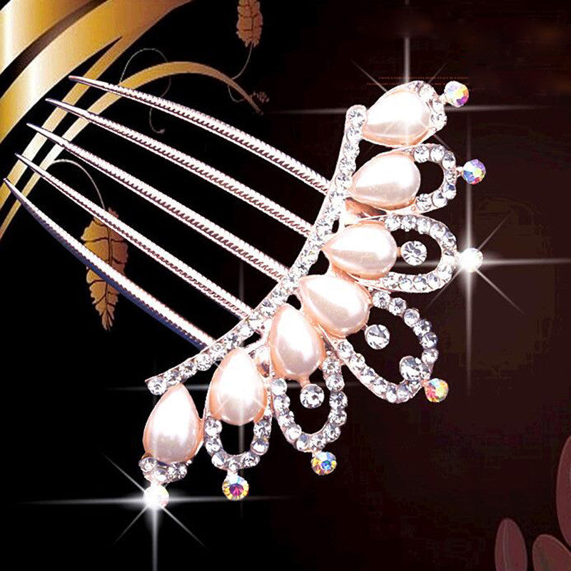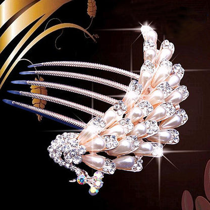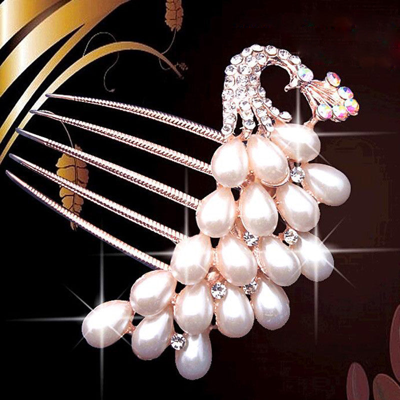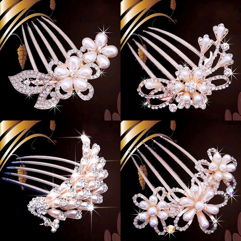 bride hairpin Peacock pearl flowers Wedding crystal rhinestone pearl flower hairpin diamante